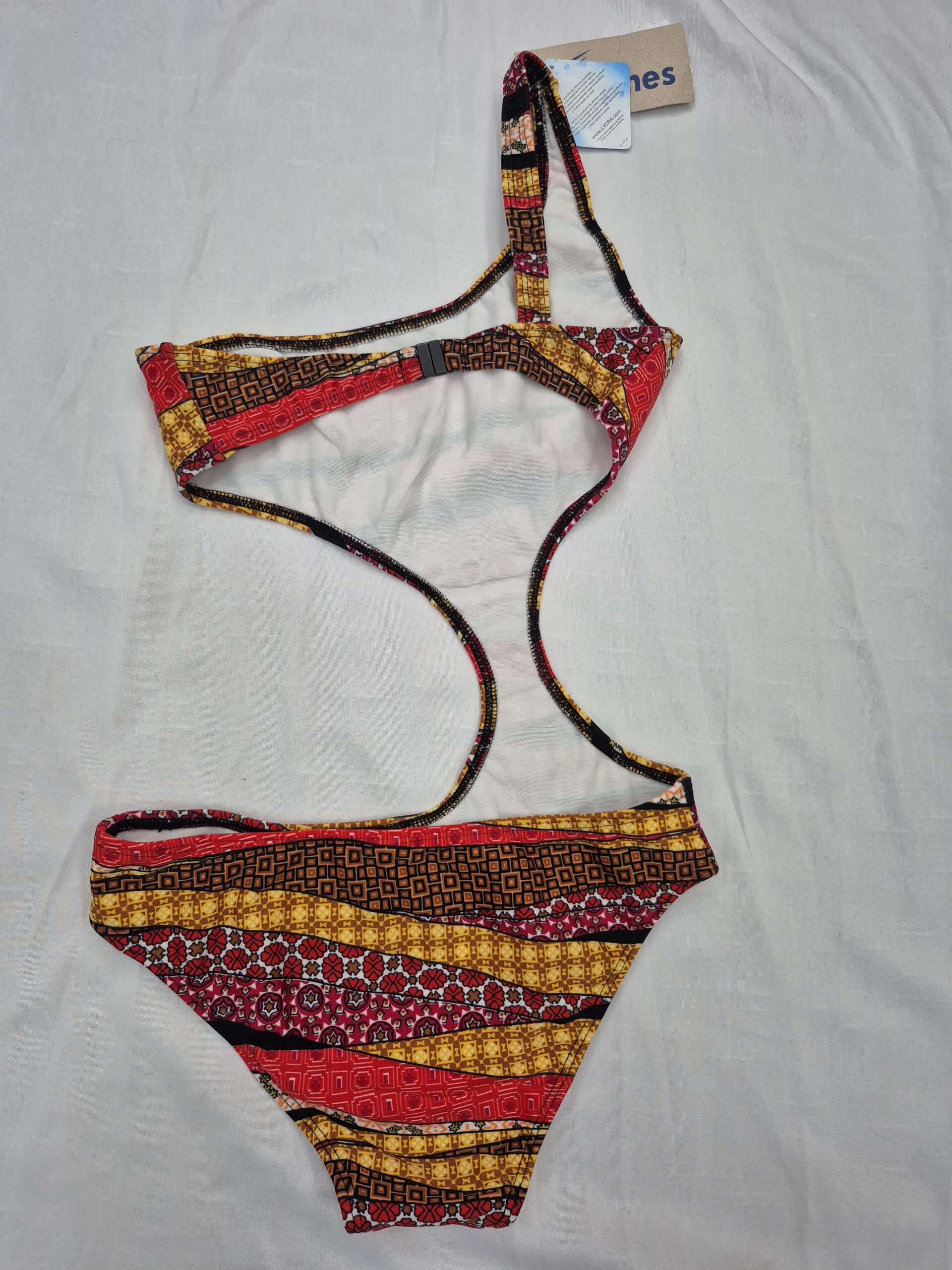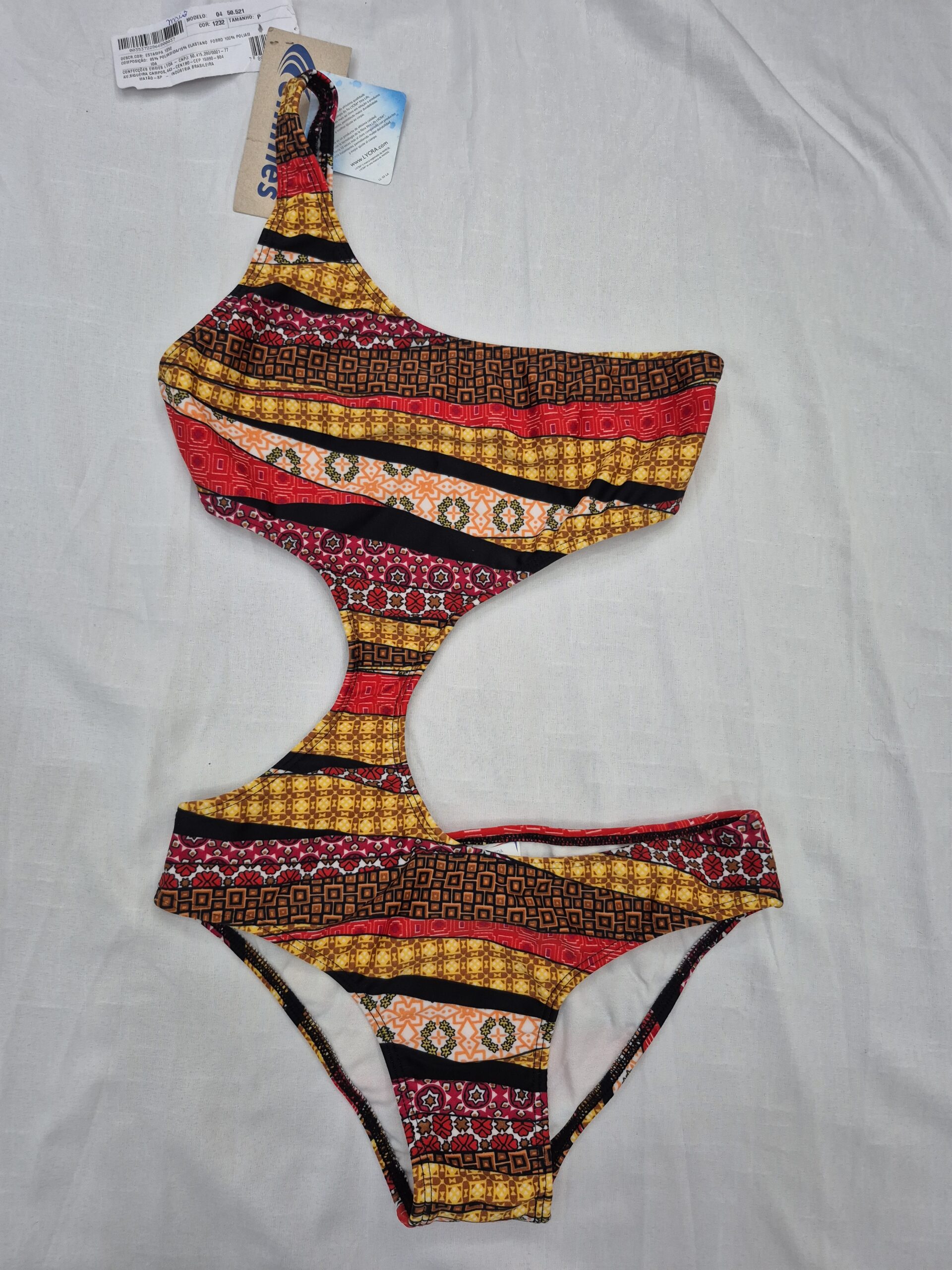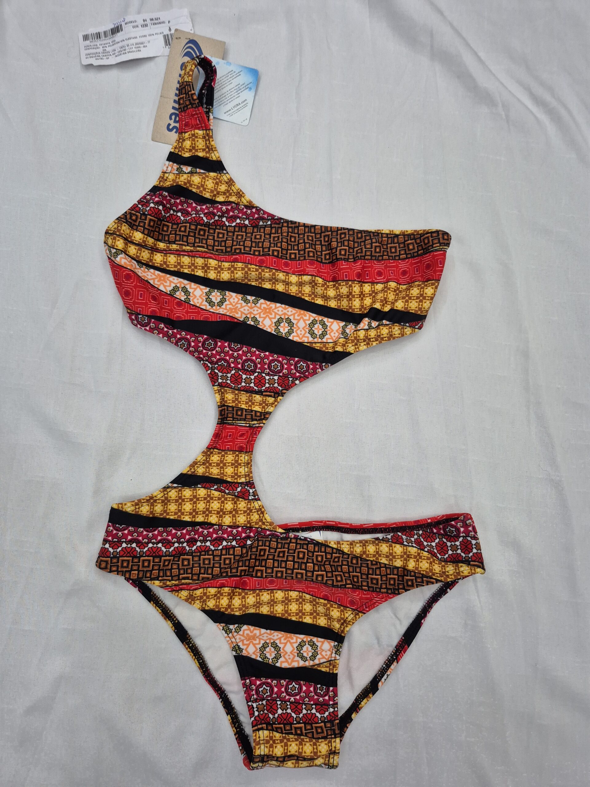 Maiô um Ombro Só com recorte na cintura.