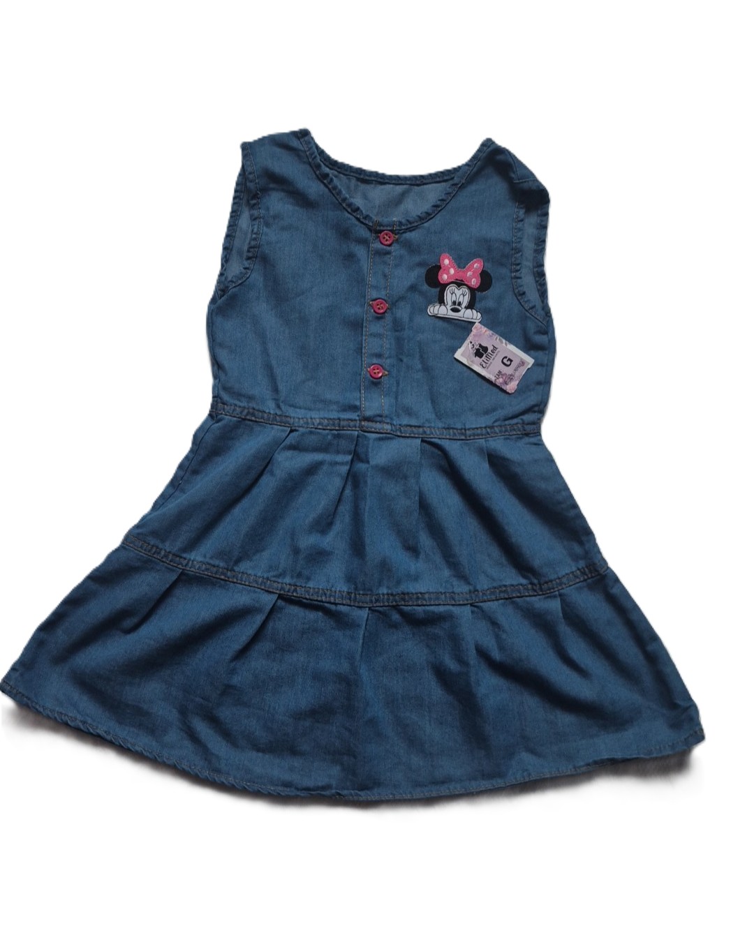 Vestido tipo jeans, com estampa da Minnie.
